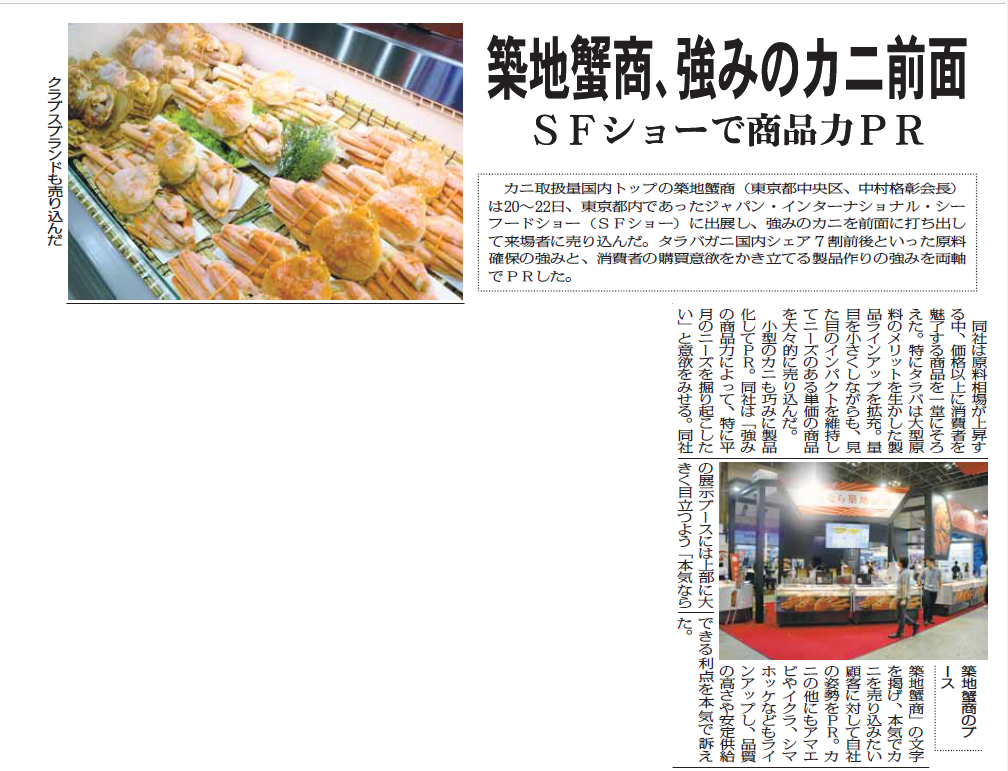 日刊みなと新聞にて、築地蟹商が掲載されました。詳細は掲載記事をご覧ください。